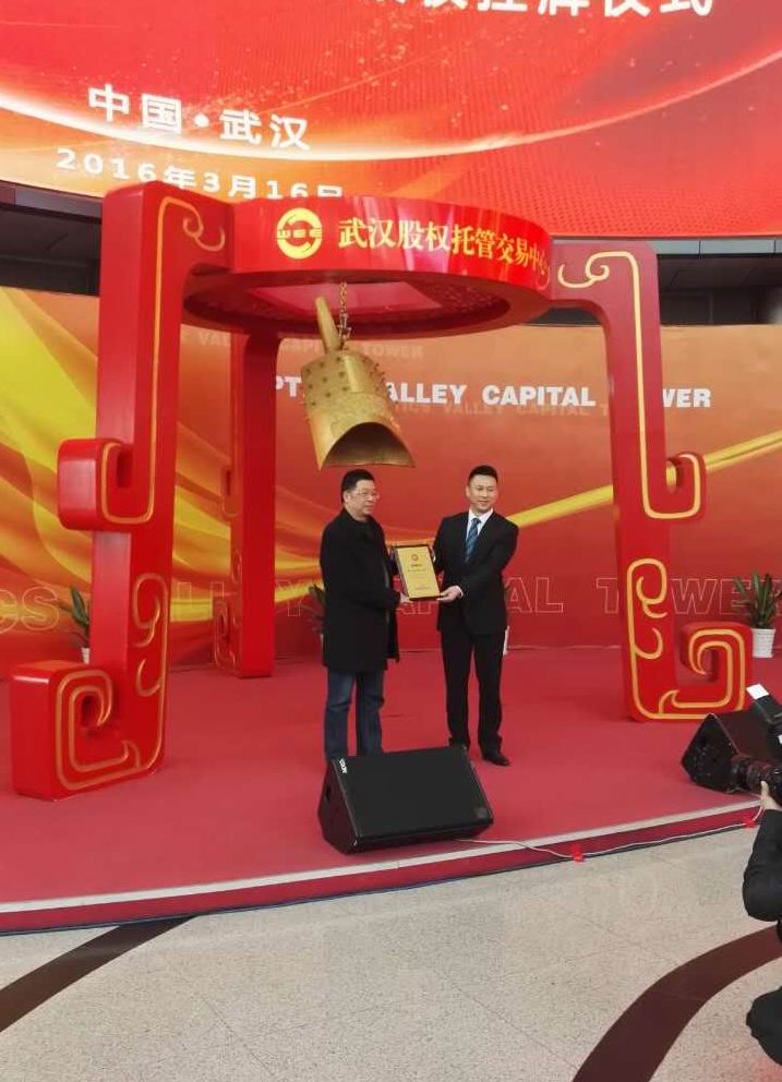 3.16日,公司在武汉股权托管交易中心鸣响金钟,举行了挂牌仪式,标志着我公司正式挂牌,股权代码100623. 相信公司将以此为起点进入发展的快车道!